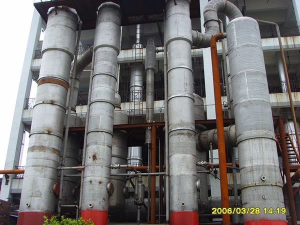 公司還涉足高濃度污水處理行業(yè)。經過公司研發(fā)人員的努力,開發(fā)出了YBJXH型強制降膜循環(huán)多效、TVR、MVR蒸發(fā)器用于處理工業(yè)污水,并在聯邦制藥成都和內蒙古公司、印度阿拉濱度、煙臺萬潤精細化工等應用成功。另在2002年山東魯洲集團河南公司成功利用管束干燥機的廢熱制造了18噸廢熱蒸發(fā)器,用至現在。其中聯邦制藥成都公司選用的污水處理蒸發(fā)器有:50噸一套,35噸2套,12噸一套;聯邦制藥內蒙古公司選用50噸污水處理蒸發(fā)器共3套;液糖車間YBJM30噸四效降膜蒸發(fā)器2套;YBJM20噸四效降膜蒸發(fā)器2套。印度阿拉濱度25噸1套、15噸3套、10噸1套、5噸1套;2.5噸8套等等。